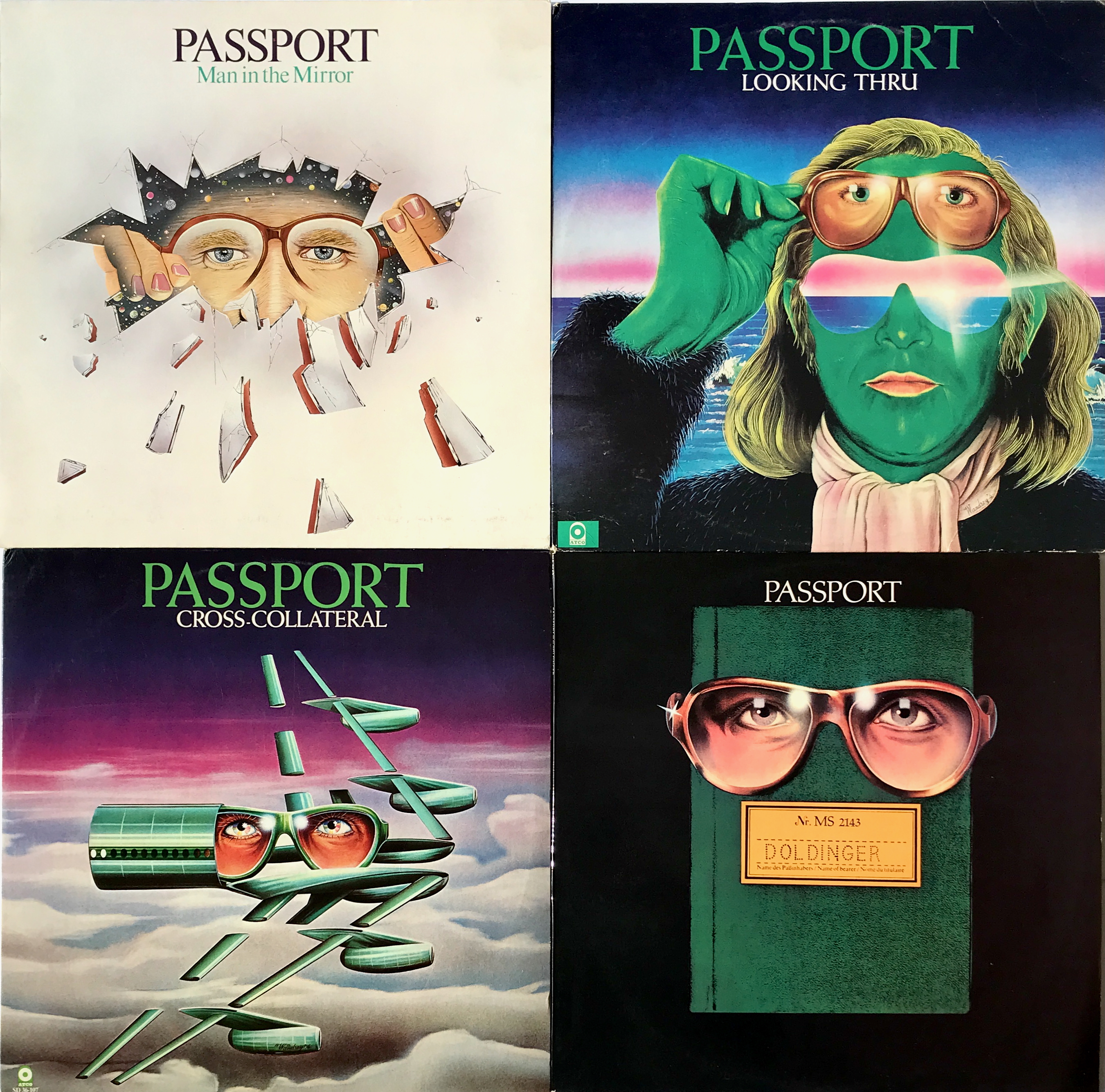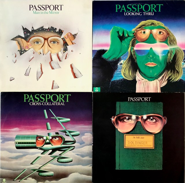 Part of the appeal of Passport is the through-line of their Magritte-influenced album cover art. The covers below were created by Wandrey’s Studio, Hamburg (except for the 1983 LP, artwork by Gerd Huss).